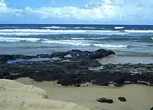 Coffee rock is the common name for the rock-like formations of indurated sands that were formed from ancient river sediments of the Pleistocene age.