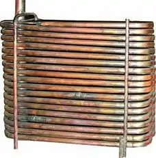 A coil, in chemistry, is a tube, frequently in spiral form, used commonly to cool steam originating from a distillation and thus to condense it in liquid form. Usually it is of copper or another material that conducts heat easily. However copper is mostly used as a material, when a higher hardness is required it is combined with other elements to make an alloy such as brass or bronze.[1]