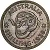 Portrait of King George VI. Designed by Thomas H. Paget. | Ram's head facing left, "AUSTRALIA" above, two Federation stars, "SHILLING" and year below. Designed by George Kruger Gray. | 1938 | 1938–1944 | ||||||