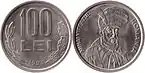 100 lei | 29 mm | 8.75 g | Nickel-plated steel | "ROMANIA *** ROMANIA *** ROMANIA ***" | Value, oak leaves, olive leaves, year of minting | Mihai Viteazul, state title, "MIHAI VITEAZUL" | 1991 | 1 January 2007 | Indefinite |