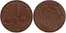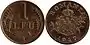 | 1 b | 16.75 mm | 1.6 mm | 2.4 g | Brass-plated steel | Smooth | Coat of arms, state title, year of minting | Value | 2005 | 1 July 2005 | |