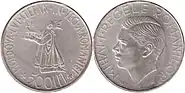 200 lei | 24 mm | 6 g | silver 0.835 | "MIHAI I REGELE ROMANILOR" ("Michael I of Romania King of Romania"), effigy of the King | 1942 | ||||