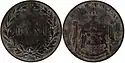 | 1 leu | 23 mm | 5 g | Silver 83.5%, Copper 16.5% | Milled | Value, "CAROL I DOMNUL ROMANIEI" ("Carol I Prince of Romania"), the effigy of Prince Carol I | "1866 - 1906", "CAROL I REGE AL ROMANIEI" ("Carol I King of Romania"), the effigy of the King | 1906 | |||