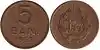 | 5 b | 18.25 mm | 1.6 mm | 2.8 g | Copper-plated steel | Milled (102 reeds) | Coat of arms, state title, year of minting | Value | 2005 | 1 July 2005 | |