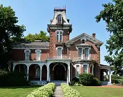 The Col. William H. Fulkerson Farmstead, also known as Hazel Dell, is a historic farm located at 1510 North State Street (U.S. Route 67) 1.5 miles (2.4 km) north of Jerseyville, Illinois. The 58.26 acres (23.58 ha) farm includes an Italian Villa style farmhouse, a carriage house, a barn, grain fields, and fruit orchards. Colonel William H. Fulkerson, a Confederate Civil War veteran, and his wife Cornelia settled at the farm in 1866. The couple began construction on the farmhouse in the same year; it was completed in 1872. The two-story farmhouse, designed by Jerseyville architect William Embley, is one of the best-preserved Italian Villa style houses in the Jerseyville area. A tower with a mansard roof, a characteristic Italian Villa element, tops the front entrance. The house's front porch features arched openings and scrolled bracket; a smaller porch on the north side has the same design. In typical Italianate fashion, the house's windows are mainly tall and rectangular with brick hoods, and several have a segmental arched form.[2]