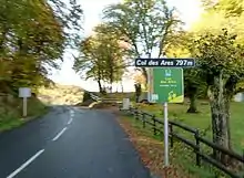 Col des Ares (elevation 797 m (2,615 ft)) is a mountain pass located in Haute-Garonne, between Juzet-d'Izaut and Fronsac, some thirty kilometres north of Bagnères-de-Luchon, and south-west of Aspet.