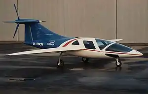 The Colani Cormoran CCE208 was a five-seat light aircraft under development in Germany in the late 1980s. The highly streamlined and unusual design was the work of the aeronautical engineer Walter Schulze with the collaboration of the celebrated industrial designer Luigi Colani. A particularly unorthodox feature was the pusher propeller mounted behind the top of the T-tail. Power was to be supplied by a converted Porsche automobile engine rated at 245 horsepower. The airframe was to be largely composite construction. A mockup was displayed at the Paris Air Show in 1987.