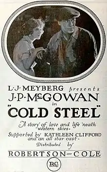 Cold Steel is a 1921 American silent action film directed by Sherwood MacDonald and starring J.P. McGowan, Kathleen Clifford and Stanhope Wheatcroft.[1]