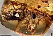 Burmese amber is fossil resin dating to the early Late Cretaceous Cenomanian age recovered from deposits in the Hukawng Valley of northern Myanmar. It is known for being one of the most diverse Cretaceous age amber paleobiotas, containing rich arthropod fossils, along with uncommon vertebrate fossils and even rare marine inclusions. A mostly complete list of all taxa described up until 2018 can be found in Ross 2018;[1] its supplement Ross 2019b covers most of 2019.[2]
