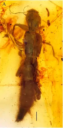 - Liu, Y.; Tihelka, E.; Huang, D.; Tian, L.; Cai, C. (2020). "A new fossil species of the rove beetle subfamily Protopselaphinae (Coleoptera: Staphylinidae) from mid-Cretaceous Burmese amber". Historical Biology: An International Journal of Paleobiology. 33 (10): 2019–2024. doi:10.1080/08912963.2020.1762594. S2CID 219405860.