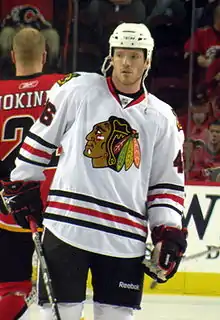 Fraser was born in Sicamous, but raised in Surrey, British Columbia. Growing up, he played minor hockey with the Pacific Vipers of Vancouver with future Chicago Blackhawks teammates Brent Seabrook, Andrew Ladd and Troy Brouwer.[1] He went on to play major junior in the Western Hockey League (WHL) with the Red Deer Rebels for four years. He spent time as their team captain. Following a 52-point campaign in his second WHL season, Fraser was drafted in the third round, 69th overall, by the Philadelphia Flyers in the 2003 NHL Entry Draft. In the subsequent season after being drafted by the Flyers, Fraser was traded to the Chicago Blackhawks on February 19, 2004, while still in the WHL, along with Jim Vandermeer and a second round selection (Bryan Bickell) in 2004 in exchange for Alexei Zhamnov and a fourth round selection (R. J. Anderson) in 2004.