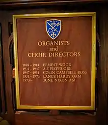 Colin Ross was born in 1911 in Brecon, of Scottish ancestry, the younger son of Archibald Campbell Carne Ross, of Penzance and Brecon, a stockbroker; his elder brother was the linguist Alan S. C. Ross.[1] His organ teacher was J.H.Carden, organist of Brecon Cathedral, whose articled pupil he became at the age of sixteen. In 1930 he moved to Hereford to be articled pupil to Sir Percy Hull at Hereford Cathedral, and in 1935 he was made assistant organist there. He was the first person to hold such a role.[2] It was while at Hereford that Ross met and married his wife Leila Hodges in 1939, according to amateur research by 'The Artful Dodger'.[3] The couple later had one daughter, Alison. In 1940 he was called up and became a private in the British army. After discharge he went to the Royal Academy of Music in London to study conducting and composition. After a number of appointments, including at St Barnabas', Tunbridge Wells, he was appointed organist and choir master of St Paul's Cathedral in Melbourne, Australia, which he held from 1947 to 1951. This appointment was on the recommendation of Sir William McKie, who was organist at Westminster Abbey. In 1951 he returned to England, having gained a number of organist's jobs in London, Tunbridge Wells, and Worth in East Sussex, before moving to Newcastle Upon Tyne to become organist and choirmaster at Cathedral Church of St Nicholas in 1955.[4] In 1966 he moved to Worthing in West Sussex to take up the post of music teacher at the Boys' High School where he stayed for two years. In 1972 he joined the staff of Chichester College of Further Education. Ross died in February 1993.