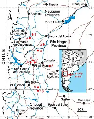 ![]() Area around the Comallo railway, with outcrops of this formation | |