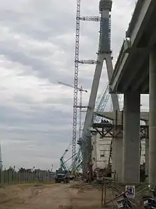 Cần Thơ Bridge is a cable-stayed bridge over the Hậu (Bassac) River, the largest distributary of the Mekong River. The 2.75 kilometres (1.71 mi) four-lane bridge is located in Bình Minh District, Vĩnh Long Province, opposite Cần Thơ, Mekong Delta, approximately 170 kilometres (110 mi) south of Ho Chi Minh City. Prime Minister Phan Văn Khải launched its construction on September 25, 2004; it was scheduled to be completed at the end of 2008, but was not opened to traffic until April, 2010. The bridge was built to replace the ferry system that ran along National Route 1, linking Vĩnh Long Province and Cần Thơ city. The estimated construction cost was 4,832 billion vietnamese đồng (approximately US$342.6 million). It was built under the supervision of consultant Nippon Koei-Chodai, which was working with Japanese contractors, including the Taisei Corporation, Kajima Construction and Nippon Steel. Capital for the project was provided by the Japan International Cooperation Agency, which received official development assistance loans from the Japan Bank of International Cooperation and the Vietnamese government.[8]