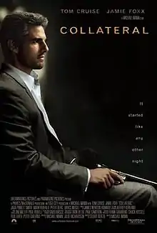 Collateral is a 2004 American neo-noir action thriller film[3][4] directed and produced by Michael Mann from a script by Stuart Beattie and starring Tom Cruise and Jamie Foxx. The supporting cast includes Jada Pinkett Smith, Mark Ruffalo, Peter Berg, Javier Bardem, and Bruce McGill. The film follows Max Durocher, a Los Angeles cab driver, and his customer, Vincent. When offered a high fare for driving to several locations, Max agrees but soon finds himself taken hostage by Vincent who turns out to be a hitman on a contract killing spree.