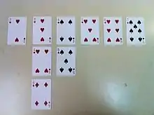 The most frequently used collective induction task is a task that requires participants to discern the pattern that a particular series of playing cards are laid in. The task experimenter first generates a rule about how cards should be laid. The rule may be determined based on any facet of the cards. For example, the pattern could be two red cards followed by a spade. The experimenter begins by laying a card that fits the rule. Then group members make suggestions for what card should be laid next. If the card fits the pattern, the experimenter places the card to the right of the previous correctly laid card. If the card does not fit the pattern, then the experimenter places it below the previous card. Participants work to discern the pattern. After ten rounds, participants are asked to propose their hypothesis about what the rule could be. Some modifications to this procedure have been used. For example, in some variations, groups are allowed to put forth multiple hypotheses and use multiple card displays.[4]