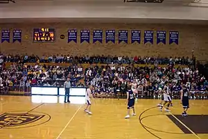 St. Thomas' longtime archrival was Saint John's University from Collegeville, Minnesota. Recent national titles include men's basketball in 2011 and 2016;[32] men's baseball in 2009 and 2001; women's softball in 2005 and 2004; men's lacrosse (MCLA Division II) in 2019, 2016, 2013, 2012, 2010 and 2009; women's volleyball in 2012; and dance team in 2017, 2016, 2015, 2014, 2013, 2012, 2011, 2010, 2008 and 2006. St. Thomas also won national championships with women's basketball in 1991; men's cross country in 1986 and 1984; men's indoor track in 1985; and women's cross country in 1987, 1986, 1984 and 1982. In 2012, St. Thomas played for the first time in the Stagg Bowl in Salem, Virginia, which is the Division III Football National Championship game, against the University of Mount Union, losing 28-10.[33] In 2015, St. Thomas reached the Stagg Bowl for the second time, prompting another championship match against Mount Union. St. Thomas ultimately ended up losing the game, with a final score of 49-35.[34]