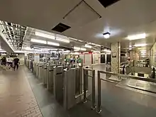 The TTC is constructing a second entrance at College Station to open in Q4 2023. The second entrance will be south of the main entrance, and riders will be able to access it from the basement level of the College Park building. The second entrance will have a concourse level under Yonge Street with Presto fare gates, and an elevator and a staircase to each of the north- and southbound platforms. Riders can use the College Park elevators from street level and a passage to reach the new concourse where riders use either a short staircase or a ramp to enter the concourse.[4][5]