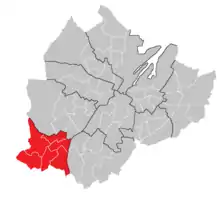 Collin is one of the ten district electoral areas (DEA) in Belfast, Northern Ireland.[1] The district elects six members to Belfast City Council and contains the wards of Dunmurry; Ladybrook; Lagmore; Poleglass; Twinbrook and Stewartstown.[2] Collin, along with neighbouring Black Mountain and most of the Court District Electoral Area, forms the greater part of the Belfast West constituencies for the Northern Ireland Assembly and UK Parliament.