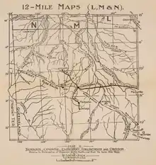 A curious publication appeared in 1885 that seems to suggest that there was an official prejudice towards Collingwood over Winton. A map showing railway development and Cobb and Co's stagecoach routes in Queensland, "compiled & lithographed from official maps", shows the name "Collingwood" printed in an italic typeface, whereas the name "Winton" was obviously written on the map by hand. Clearly, it had been left off the "official maps". Cobb and Co needed to have Winton on the map to show its route leading there from Hughenden, which then continued to Cork – bypassing Collingwood.[60] Collingwood was, however, served by a weekly horse-borne mail run between Winton and Boulia by that same year.[61]