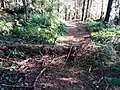 The vegetation is typical of south-facing slopes in the Coastal Douglas Fir zone, intergrading with Garry Oak-Arbutus. Western Red Cedar (Thuja plicata) is abundant in the areas shaded by cliffs, and grassland is present in coastal areas. The grasslands and open woodlands have an abundance of wildflowers typical of this zone, notably Calypso bulbosa and Collinsia parviflora.