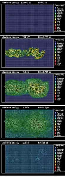 Computer simulation-based animations of collision cascades in the heat spike regime are available on YouTube.[23]