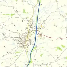 The town saw a major expansion in the 1970s as the construction of a bypass in 1969, and its conversion into part of the M5 in 1974, made it a popular commuter town,[39] and it continued to expand during the closing years of the 20th century and the first few years of the 21st century. The Mid Devon Local Development Framework Proposals include plans to erect 95 new dwellings a year, and to build 4,000 square metres (43,000 sq ft) of new employment floorspace a year between the start of the plan and 2026.[40] The first Cullompton town website was set up in 1998[41] and a new website was created in 2011.[42] CCTV was installed in the main street in 2000.[43]