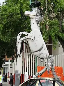 The notoriety of the event prompted Conrado Tostado, the director of the Museum of the City of Mexico, to get the city to sponsor sculptures for Colonia Buenos Aires. One artist who did work here was Ivonne Domenge. These are sculptures are made of machine parts soldered together and located on the traffic islands on Doctor Vértiz Street.[5]