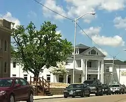 Colonial Hotel, also known as Inn at Wise Courthouse, is a historic hotel building located in Wise, Wise County, Virginia. It was built in 1910, and is a 2+1⁄2-story, roughly "U"-shaped building with a hipped roof. It is constructed of brick, painted white, and is in the Colonial Revival style. It features an angled entrance sheltered by a pedimented colossal Ionic order portico with paired round columns flanked by paneled square columns.[3]