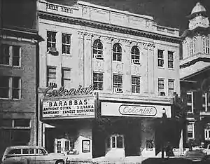 The Colonial had its opening night on October 11, 1920. Its first film was "The Idol Dancer" by D.W. Griffith. Also on the bill were a Pathe newsreel and a comedy starring silent screen favorite Harold Lloyd entitled "High and Dizzy" Matinee prices for the orchestra and balcony seats were 25 cents, but box seats on Saturday evening would be 65 cents, a high price by the standards of the time.[2]