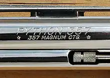 The Colt Python is a .357 Magnum caliber revolver manufactured by Colt's Manufacturing Company of Hartford, Connecticut.[1] It was first introduced in 1955, the same year as Smith & Wesson's M29 .44 Magnum. The Colt Python is intended for the premium revolver market segment. Some firearm collectors and writers such as Jeff Cooper, Ian V. Hogg, Chuck Hawks, Leroy Thompson, Scott Wolber, Renee Smeets and Martin Dougherty have described the Python as "the finest production revolver ever made".[1][2][3][4][5][6][7]