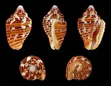 | Five views of a shell of Columbella mercatoria (Linné, 1758) | |