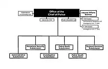 The Public Accountability Subdivision includes the Fiscal Management Bureau, Human Resources Bureau, Professional Standards Bureau, and Internal Affairs Bureau. Background Investigations for police recruits falls within this subdivision as well.[28]
