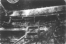 On the morning of September 1, 1912, part of the library's ceiling collapsed. The plaster of the old church covered thousands of reference works and works of fiction, and the steel ceiling put in during the remodel fell into the room as well. In the prior week, pieces of plaster were frequently falling, warning the school authorities. Late in the week, the library was cleared of everything possible and the doors were locked. It was believed that a heavy thunderstorm the prior day, as well as the booming of guns that opened Columbus's centennial celebration one week earlier, dislodged the ceiling. Though books and bookcases were not believed to be well damaged, the walls of the old church were seen as too damaged to consider repairing the building. The library's textbook department was undamaged, located in a building recently constructed next to the main building.[4]