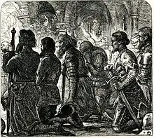 The Combat of the Thirty (French: Combat des Trente, Breton: Emgann an Tregont), occurring on 26 March 1351,[2] was an episode in the Breton War of Succession fought to determine who would rule the Duchy of Brittany. It was an arranged fight between selected combatants from both sides of the conflict, fought at a site midway between the Breton castles of Josselin and Ploërmel among 30 champions, knights, and squires on each side. The challenge was issued by Jean de Beaumanoir, a captain of Charles of Blois supported by King Philip VI of France, to Robert Bemborough, a captain of Jean de Montfort supported by Edward III of England.