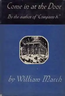 Come in at the Door is the first book in Alabama author William March’s “Pearl County” collection of novels and short fiction. It is an example of the Southern Gothic genre. Following the success of March's first novel, Company K, about World War I, the author began to explore his own childhood in south Alabama in his fiction. Come in at the Door is set in the three towns of Hodgetown, Reedyville, and Baycity, the latter offering a fictionalized vision of Mobile, Alabama. The book was first published in 1934 by Smith & Haas in New York and republished by the University of Alabama Press in 2015. The other novels in the series are The Tallons and The Looking-Glass.[1]