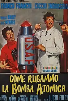Come rubammo la bomba atomica or How We Stole the Atomic Bomb is a 1967 Italian-Egyptian international co-production Eurospy comedy based on the 1966 Palomares B-52 crash. Filmed in Italy and Egypt, it stars the Italian comic duo of Franco and Ciccio and was directed by Lucio Fulci.[2] The film features a teaming of parodies of famous film secret agents.[3]