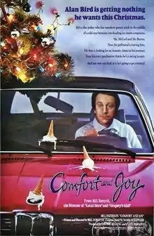 Comfort and Joy is a 1984 Scottish comedy film written and directed by Bill Forsyth and starring Bill Paterson as a radio disc jockey whose life undergoes a bizarre upheaval after his girlfriend leaves him. After he witnesses an attack on an ice cream van by angry competitors, he is led into the struggle between two Italian families over the ice cream market of Glasgow.[2] The film received a BAFTA Award Nomination for Best Original Screenplay in 1985.[3]