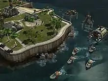 Naval warfare is emphasized as another front. Executive producer Chris Corry has stated that many units are amphibious, trading effectiveness for increased flexibility. Buildings and entire bases can be constructed on water, save for such things as ground or naval unit production facilities (e.g. tank factories are ground-only, but tsunami tanks are amphibious and can be produced in Naval Yards),[12] and players who "ignore the ocean [are] likely forfeiting a significant part of their potential economy to their opponents". Further stressing this is the fact that, despite some campaign maps being entirely land based, all multiplayer maps have significant bodies of water in them. The use of naval units and various unit abilities also helped players counterattack their opponent's units specific to that unit's strongpoint.