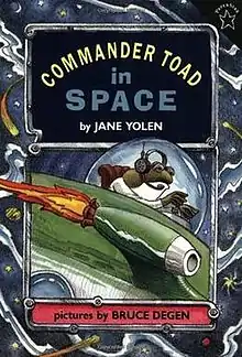 Commander Toad is a series of children's books by Jane Yolen, published by Puffin Books from 1980 to 1998. The series is a toad-themed parody of pop culture science fiction filled with puns. Star Wars is referenced with many puns on iconic Star Wars characters including Jake Skyjumper (Luke Skywalker), Deep Wader (Darth Vader) and Star Warts, the name of Commander Toad's ship. The books feature Commander Toad and his crew exploring the Galaxy for Starfleet, and each story is a different mission, a clear reference to Star Trek.