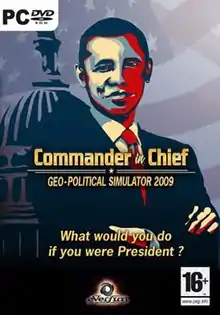 Commander in Chief, also known as Geo-Political Simulator, is a government simulation game that allows a player to simulate being a nation's head of government. Players have a large amount of control over their nation, although this varies based on the form of government the player's nation has. The English version was released on July 25, 2008, and has also been released in French, German, Spanish and Russian. The French version has been named Mission-Président.[1]