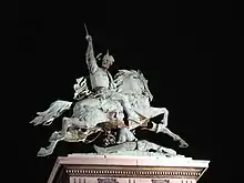 Classicist Ruth Breindal believes it likely that Caesar did not directly write the work, but instead dictated most of it to a scribe at one time and the scribe wrote as Caesar spoke, or that the scribe took notes and wrote the account afterwards. Still, she does believe that Caesar had an overwhelming hand in creating the work, but believes much of the grammar and clarity of the work to be the result of the scribe or scribes involved. Breindal also considers the main point of the work to be as a propaganda piece to protect Caesar's reputation in the vicious politics of Rome.[18] Book eight was written after Caesar's death in 44 BC by consul Aulus Hirtius; Hirtius must have written the book before his own death in the civil war in 43 BC.[19]