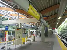 - A new platform (platform 5) to the east of platforms 3 and 4, which improves passenger traffic on those platforms by providing extra platform capacity for Waterfront station–bound Expo trains in anticipation of increased traffic at the station owing to initiatives such as the opening of the Evergreen stations on the Millennium Line.[13] Waterfront-bound trains at this station open their doors on both sides, allowing all-door boarding and alighting.[14]