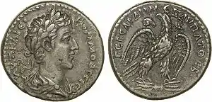 Lucius Aelius Aurelius Commodus was born on 31 August AD 161 in Lanuvium, near Rome.[5] He was the son of the reigning emperor, Marcus Aurelius, and Aurelius' first cousin, Faustina the Younger, the youngest daughter of Emperor Antoninus Pius, who had died only a few months before. Commodus had an elder twin brother, Titus Aurelius Fulvus Antoninus, who died in 165. On 12 October 166, Commodus was made Caesar together with his younger brother, Marcus Annius Verus.[6][7] The latter died in 169 having failed to recover from an operation, which left Commodus as Marcus Aurelius' sole surviving son.[7]