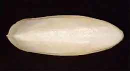 Cuttlefish reach sexual maturity between 14 and 18 months of age. During breeding season, which occurs during spring and summer in shallow waters, male cuttlefish will display a black and white zebra pattern on their mantle to attract females and females will display a uniform grey colour to indicate they are ready to mate. Cuttlefish are internal fertilizers and the number of fertilized eggs can range from 100 to 1000. After the eggs are fertilized, they will remain in the oviduct of the female for anywhere between 30 and 90 days before they are laid.[2] The eggs attach to seaweed, shells, or other substrates to prevent them from drifting away and have ink deposits on them to aid in camouflage.[1]