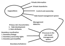 Petronio views boundary management as a rule based process, not an individual decision. This rule-based management system allows for management on the individual and collective levels. This system depends on three privacy rule management to regulate the process of revealing and concealing private information: privacy rule characteristics, boundary coordination, and boundary turbulence.