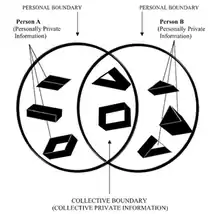 To understand CPM theory it is important to follow the metaphor of the boundary. Private boundaries are the division between private information and public information.[5] When private information is shared, there will be a collective boundary. When private information remains with an individual and is not disclosed, the boundary is called a personal boundary. An individual's private information is protected by their boundaries. The permeability of these boundaries are ever-changing. Boundaries can be relatively permeable (easy to cross) or relatively impregnable (rigid and difficult to cross).