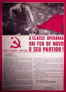 PCP(R) was founded at a unitary congress in December 1975, through the fusion of the Portuguese Marxist-Leninist Communist Organization, the Portuguese Marxist-Leninist Committee and the Organization for the Reconstruction of the Communist Party (Marxist-Leninist).[2]