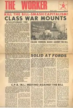 The party was formed in 1968 by Reg Birch as a Maoist, anti-revisionist breakaway from the Communist Party of Great Britain, siding with the Communist Party of China in the Sino-Soviet split.[1] From 1979 onwards the CPB-ML sided with Enver Hoxha in the Sino-Albanian split.[2]