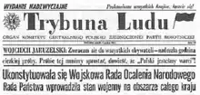 The origins of Polish television date back to the late 1930s,[32][33] however, the beginning of World War II interrupted further progress at establishing a regularly televised program. The first prime state television corporation, Telewizja Polska, was founded after the war in 1952 and was hailed as a great success by the communist authorities.[34] The foundation date corresponds to the time of the very first regularly televised broadcast which occurred at 07:00 p.m CET on 25 October 1952.[34] Initially, the auditions were broadcast to a limited number of viewers and at set dates, often a month apart. On 23 January 1953 regular shows began to appear on the first and only channel, TVP1.[35] The second channel, TVP2, was launched in 1970 and coloured television was introduced in 1971. Most reliable sources of information in the 1950s were newspapers, most notably Trybuna Ludu (People's Tribune).